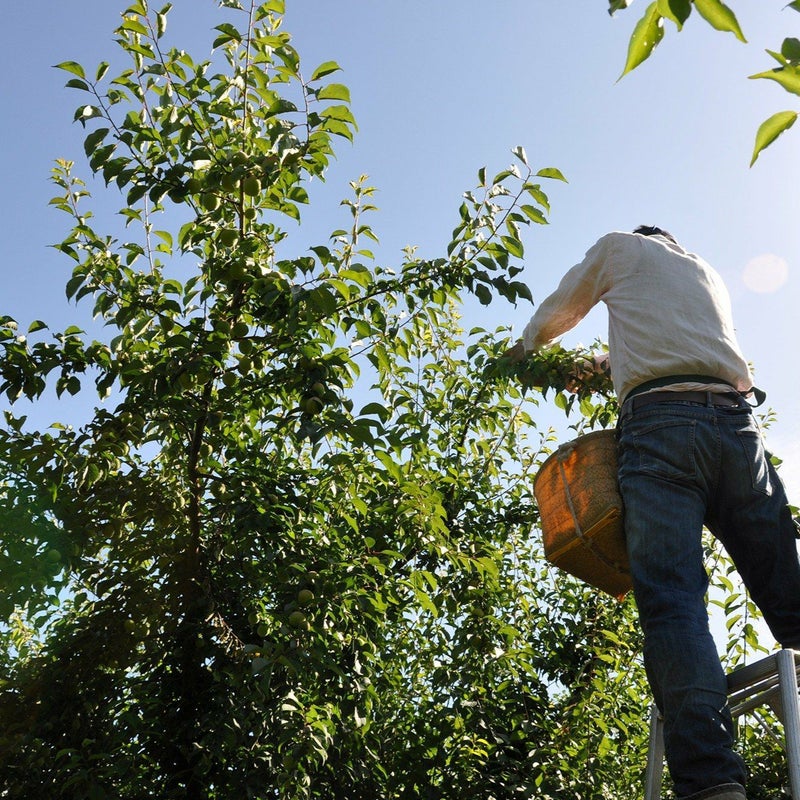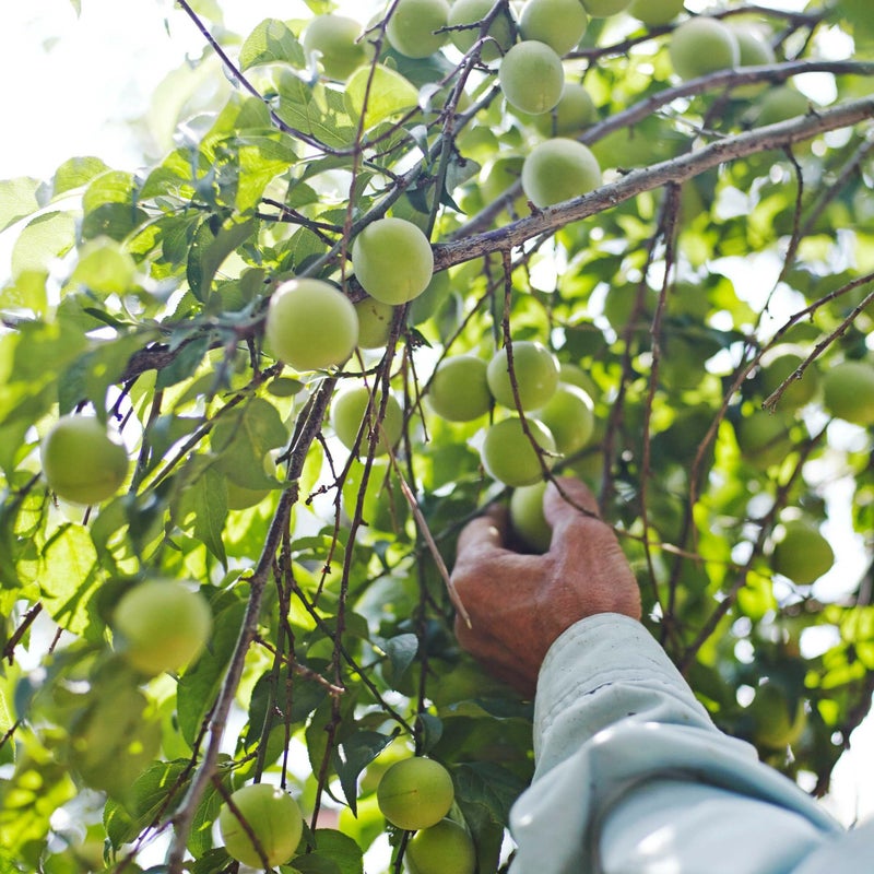 | 白加賀 | 花も実も古くから親しまれてきた梅。 果肉は緻密で肉厚ながら、繊維が少ないのが特徴です。 皮が丈夫で加工しても破れにくく、さっぱりとした仕上がりの梅酒・梅ジュースが作れます。 |