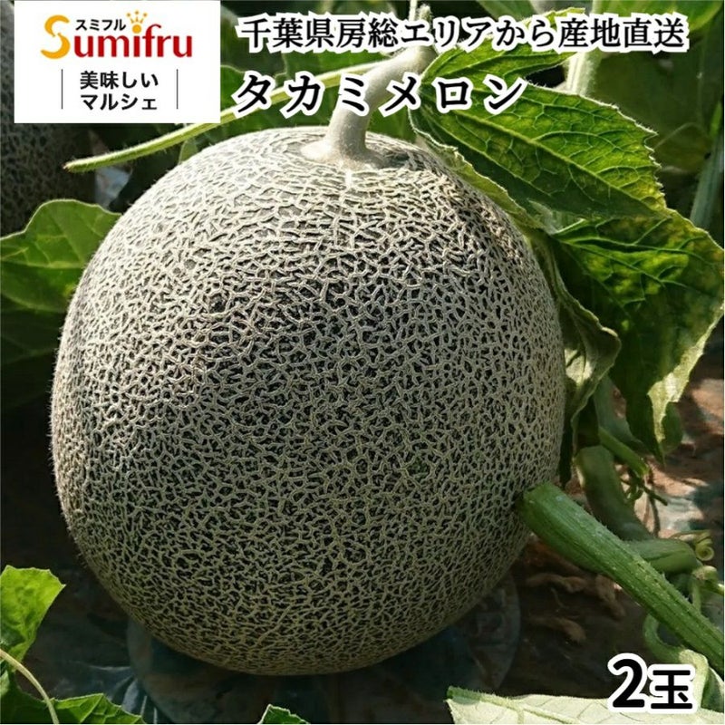 タカミメロンは、千葉県の房総地域で生産されるメロンの品種です。通常、熟すと外皮が黄色くなり、甘みが強く、果肉が濃厚でジューシーな特徴を持ちます。地域特産品として知られ、高品質なメロンとして評価されています。