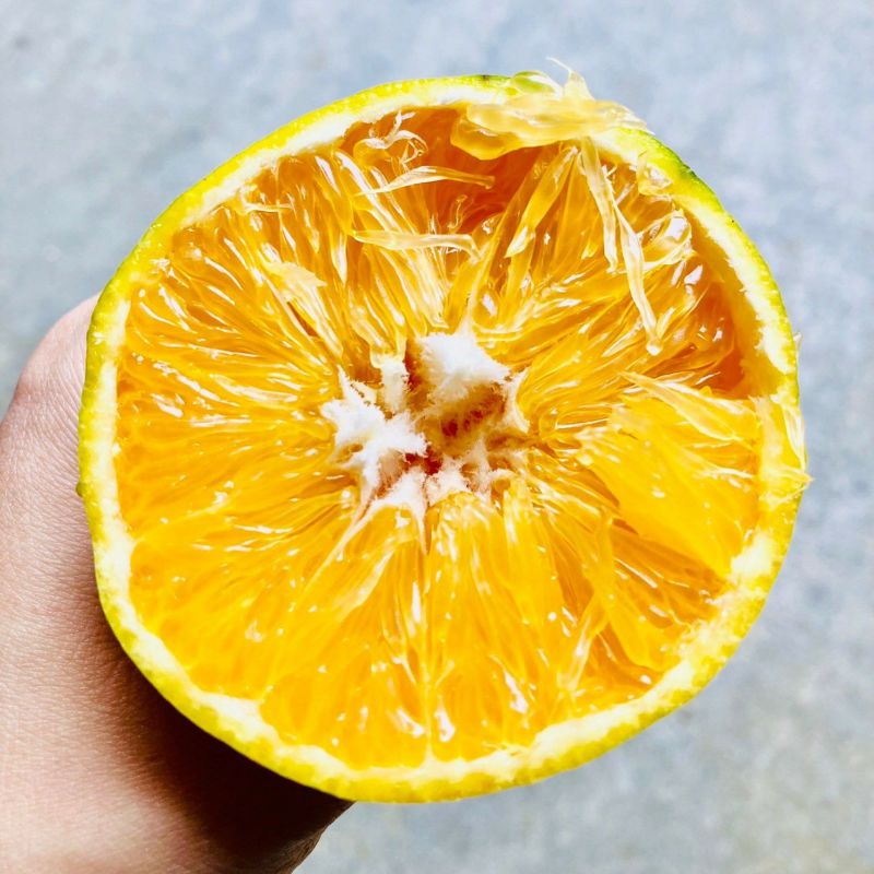 栽培期間が長いことからバレンシアオレンジ特有の現象なのですが、果皮が青くても果実は完熟しており、美味しさいっぱいです。 -